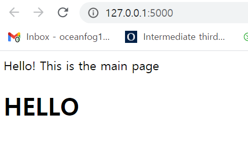 웹브라우저로 127.0.0.1:5000 넣고 들어갑니다.