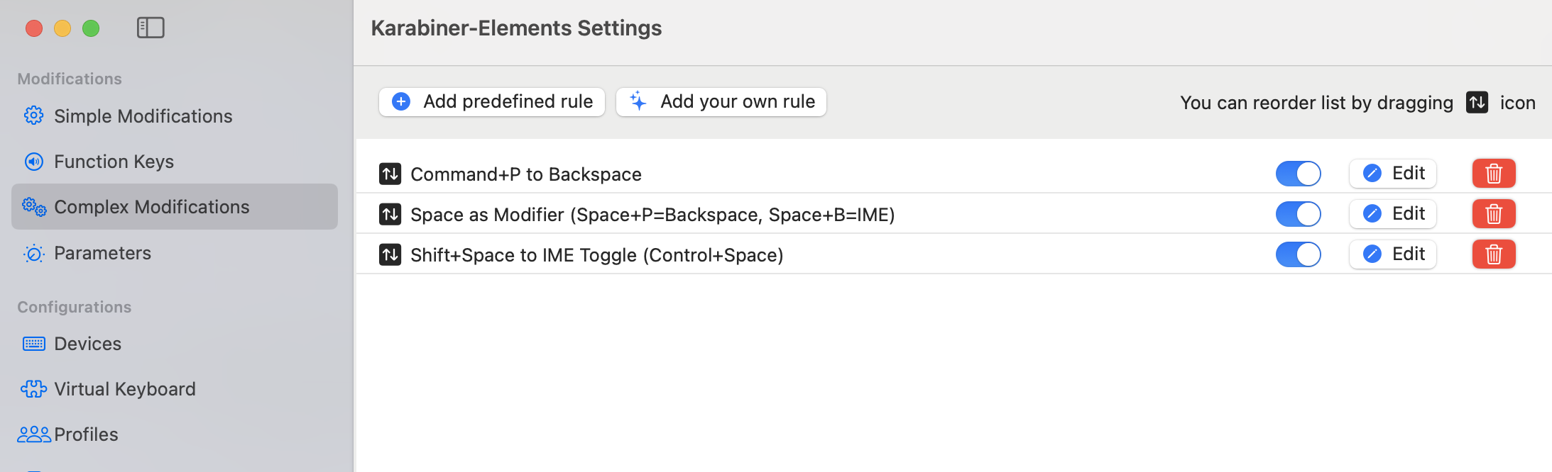 ~/.config/karabiner/karabiner.json 설정파일은 이 위치에 저장됩니다.